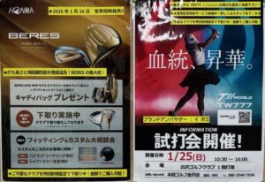 2026.01.16イベント本間ゴルフ試打会 1/25(日) 10:30~16:00 皆さまのご来場をお待ちしております💚 本間ゴルフ試打会 1/10(土)前の記事 オリジナルウィンドブレーカーDAY!次の記事