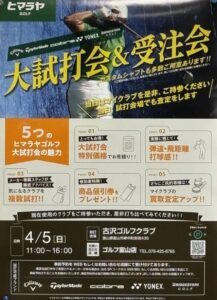 2026.04.04イベント4/5(日)ヒマラヤゴルフ富山店 大試打会&受注会 4/5(日) 11:00~16:00 古沢ゴルフクラブにおいて 皆さまのご来場をお待ちしております💚 本間ゴルフ試打会 3/20(金祝)前の記事
